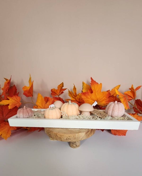 Laissez la magie de l’automne s’inviter dans votre intérieur avec ce socle décoratif en bois blanc (30 × 11 cm), orné de petites citrouilles et champignons soigneusement disposés. Une pièce unique qui évoque la douceur des sous-bois et la chaleur des foyers d’automne.