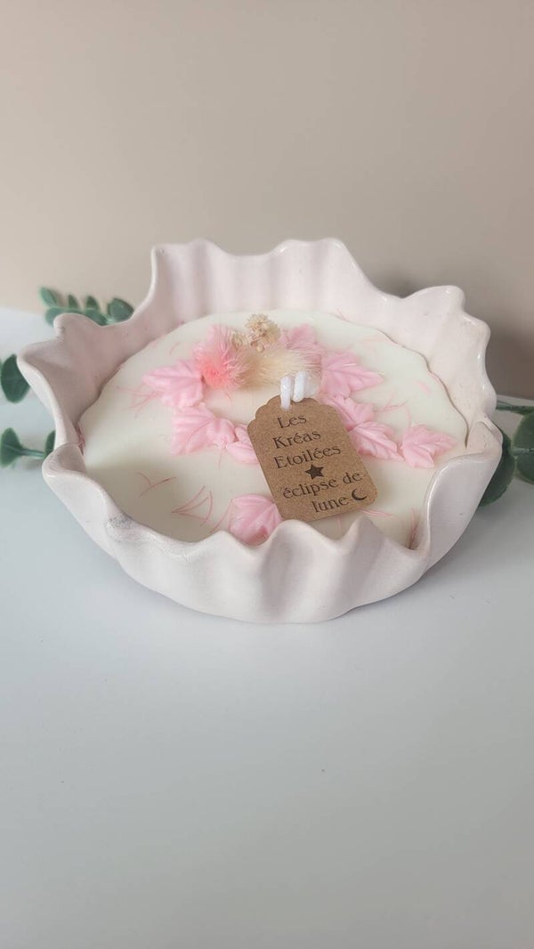 Célébrez la sensibilisation au cancer du sein avec cette bougie artisanale unique, installée sur un socle en RaySin 200 rose et sa Bougie en forme de feuille d’automne. Sa teinte douce et poétique rappelle le mois d’Octobre Rose, tandis que la décoration en feuille évoque la beauté de la saison automnale.
