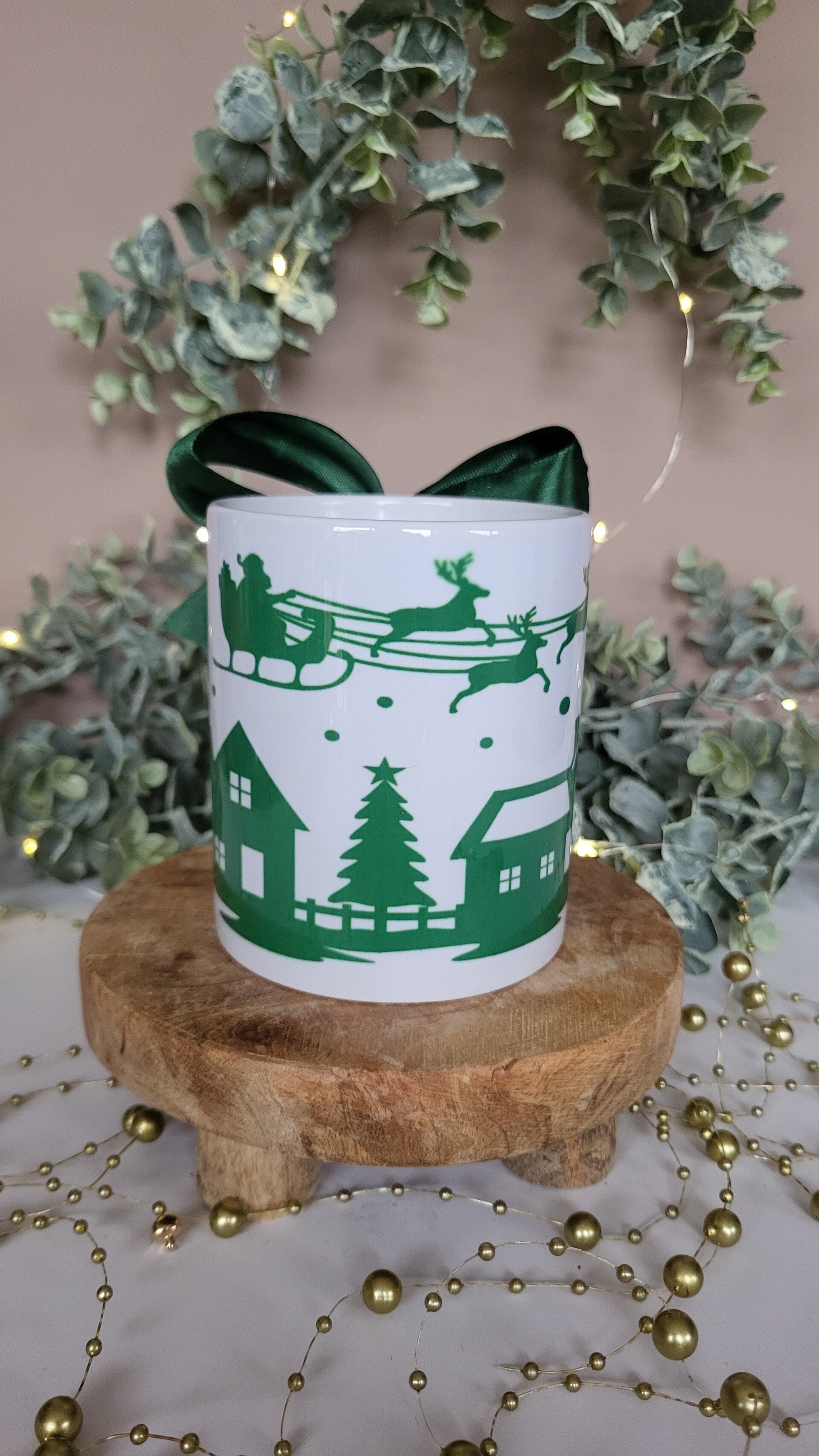 Ce mug vert sapin met en scène un charmant village illuminé, survolé par le Père Noël et ses rennes. Une touche chaleureuse et magique qui accompagne parfaitement vos moments cocooning et vos boissons préférées durant la saison hivernale.